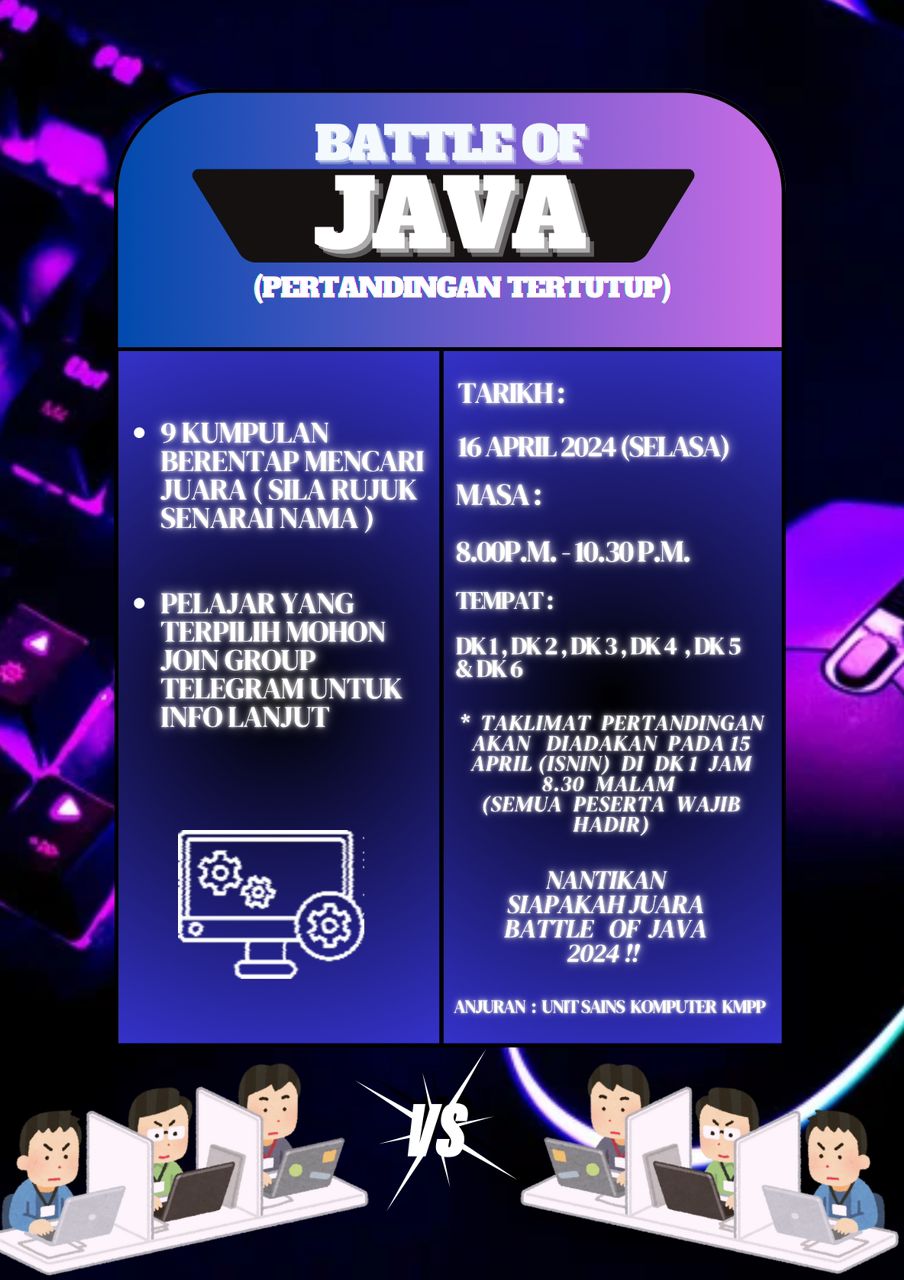 - Collaborates with other associations such as the An-Nur Committee (ANC), Peer Dynamic Mentors (PRD), and the Student Representative Committee (JPP) to successfully organize programs such as the Penang Matriculation College Festival (FESKOM Penang), Matriculation Science Carnival (MASCAR), and others.